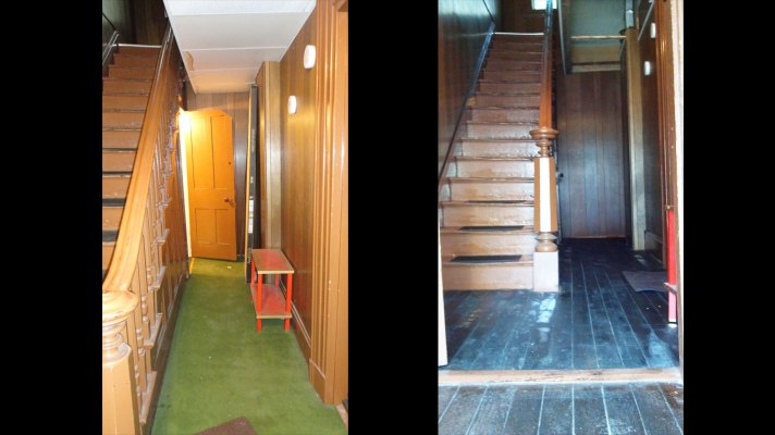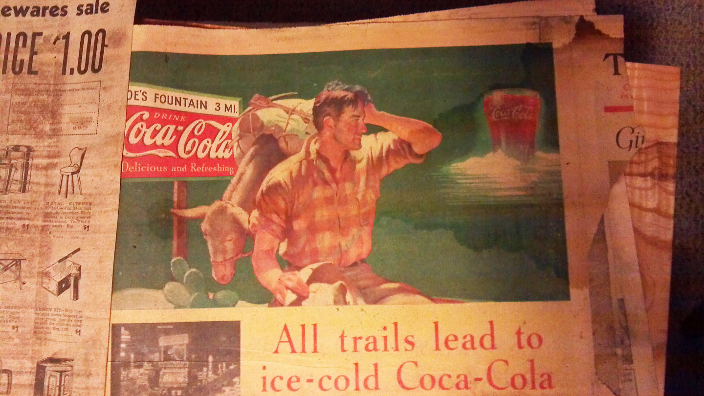 And we were not without buried treasures… check out the 1935 Coke ad, found under 2 layers of carpet and 3 layers of vinyl flooring.  This one’s getting framed.  Did you know that all trails lead to ice-cold Coca-Cola?  And sometimes… hardwood floors!