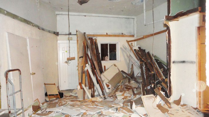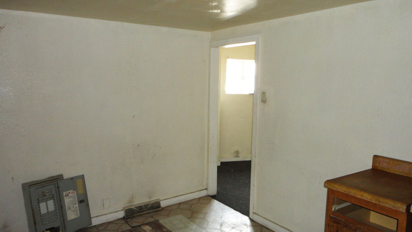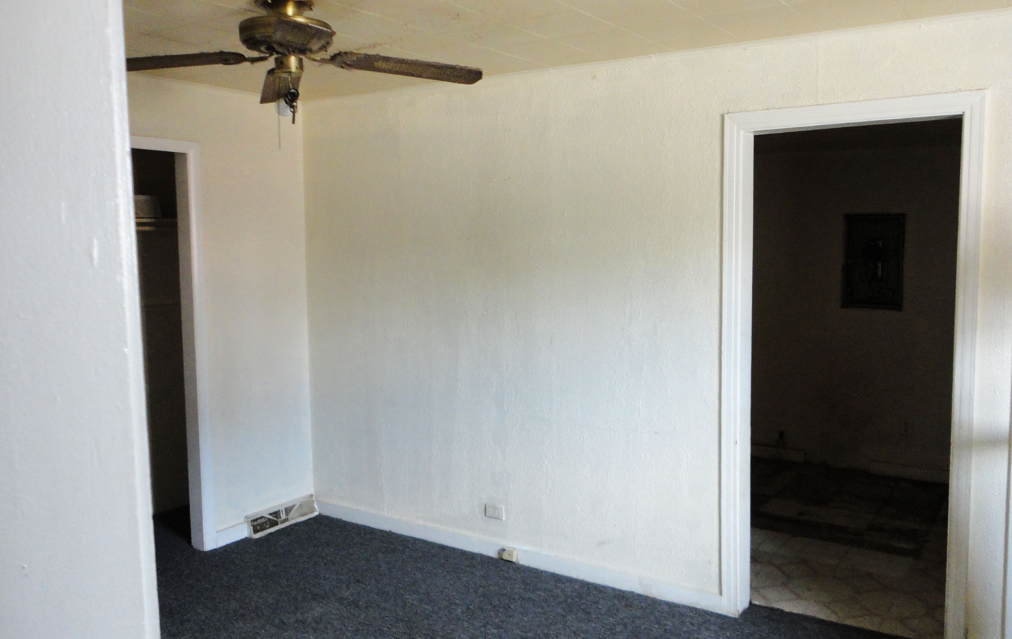 The big reveal last night was the first floor front apartment.  It’s the one I felt had the least potential… it was dark, cramped (sectioned off into 3 weird small rooms), and felt really “basement-y” for lack of better terms.  This space had originally been a store so we knew there was a chance for high ceilings.  My fingers were crossed that we were right… because this place needed serious help.  So, check it out… the reveal: