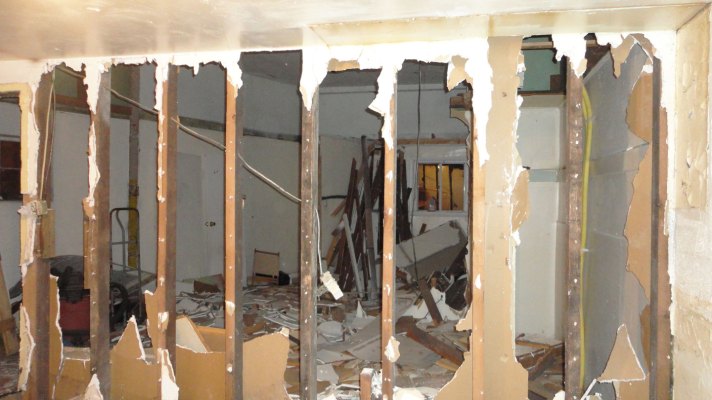 I may or may not have squealed with delight…  check out the line of the old dropped ceiling vs.  the original height.  Standing in the middle of the space (messy as it is) it really felt good.  This is going to make a great little loft!