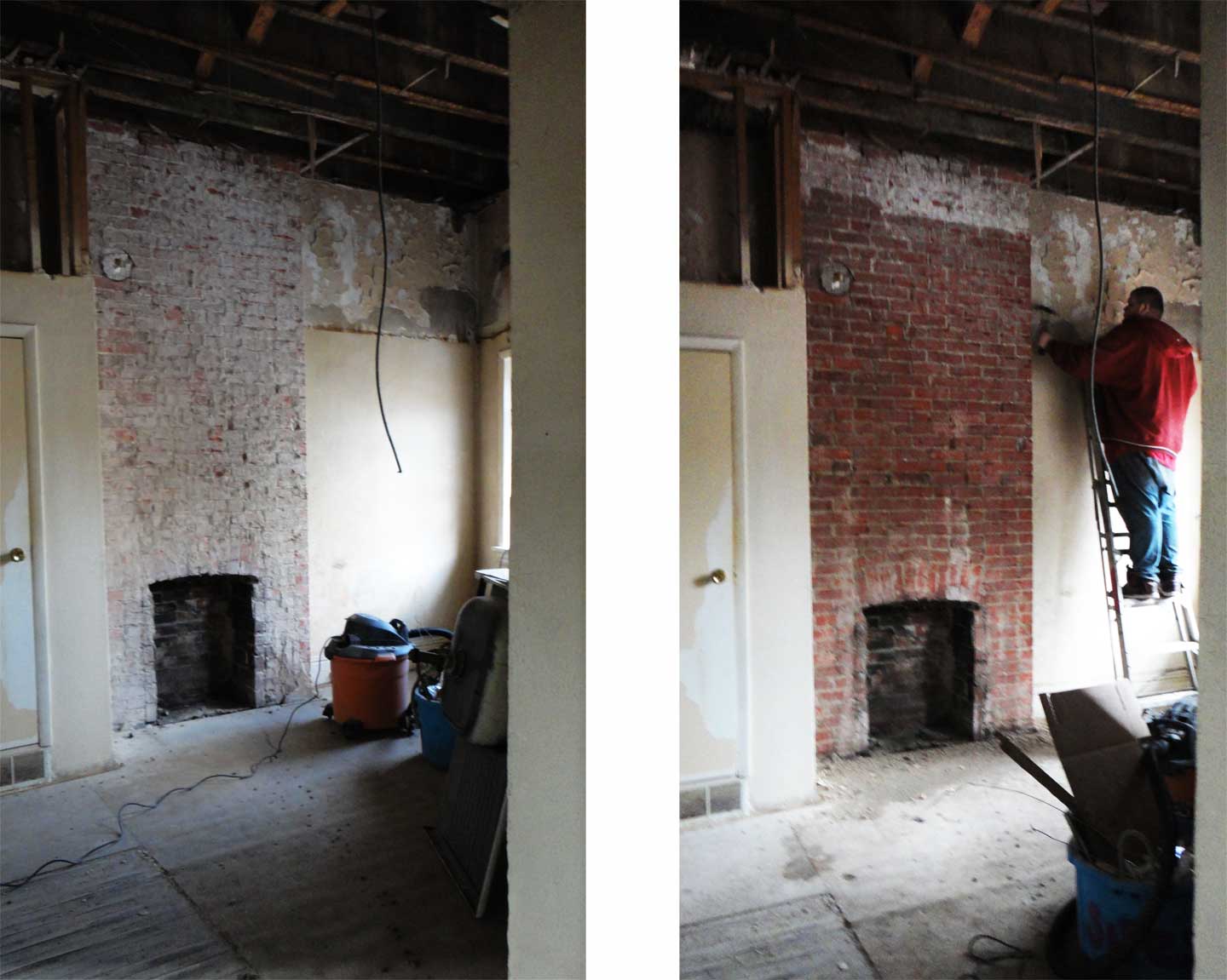 This week we also made progress on some of the chimney cleaning… see here the before and after of the Studio Apartment’s living room fireplace that Jason and I had discovered back in October…