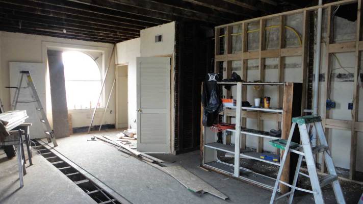 We didn’t completely forget about the rest of the building though… Progress was made in many other places- Also finished this week was the framing in of the closet in the second floor bedroom (the metal anchors you were just looking at are in this bedroom in the far right corner under the table…)