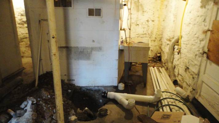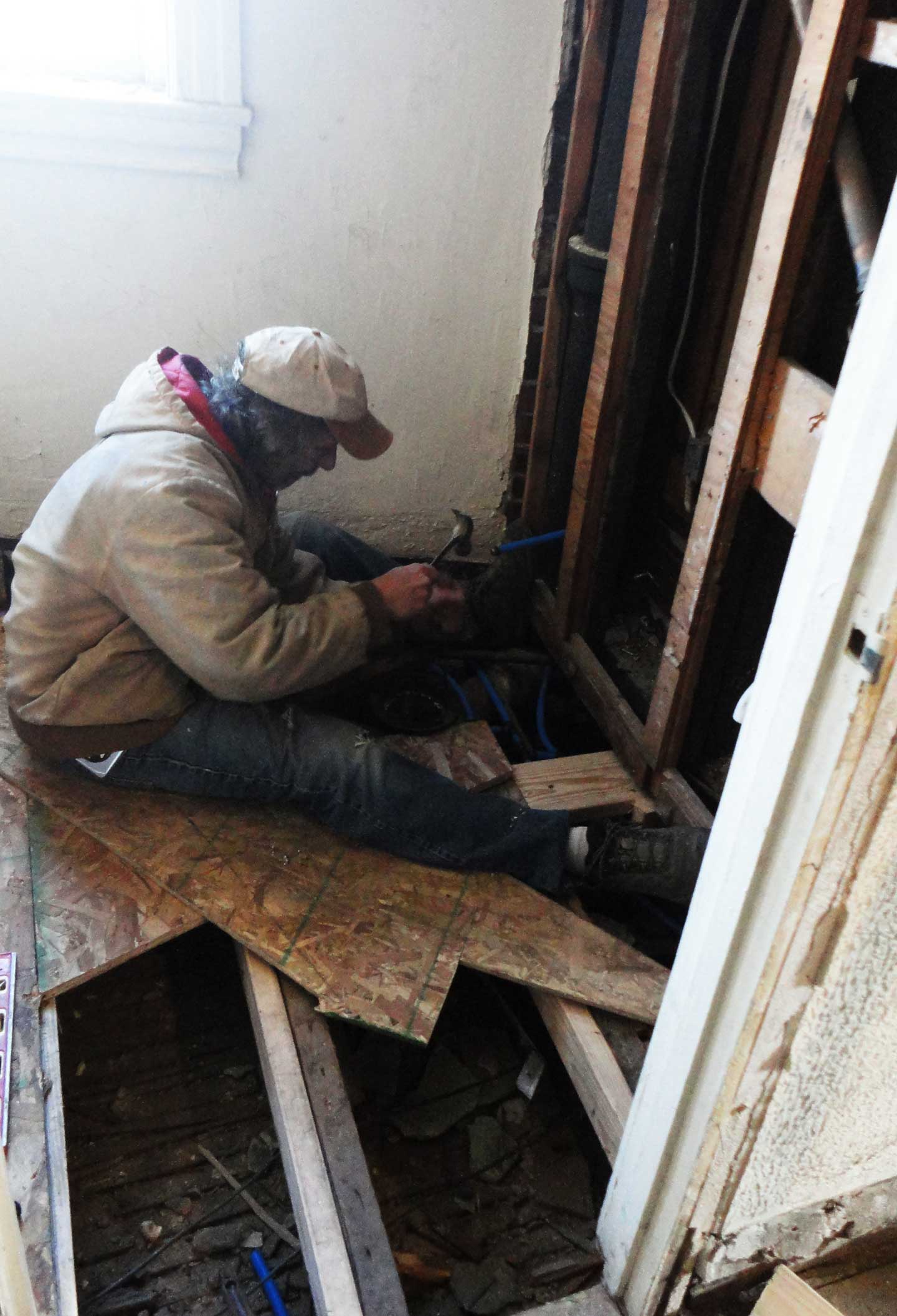 We knew that although the building’s structure and heating systems were in pretty decent shape, the plumbing was a mess. The old owner had let the lines freeze, so many of them were ruptured. There are actually accounts from the neighbors of ice waterfalls going down the outside of the building at one point! Wow. So we already knew that most of the water lines were going to have to be replaced. What we didn’t know was that the plumbing work that had been done on the building was pretty shoddy.