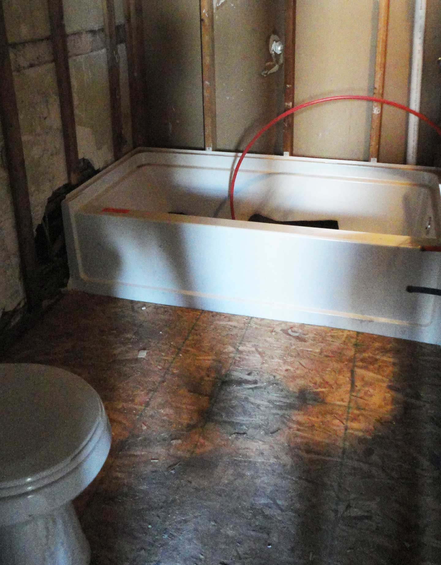 Here you can see the studio apartment’s bathroom all ready with toilet and tub: