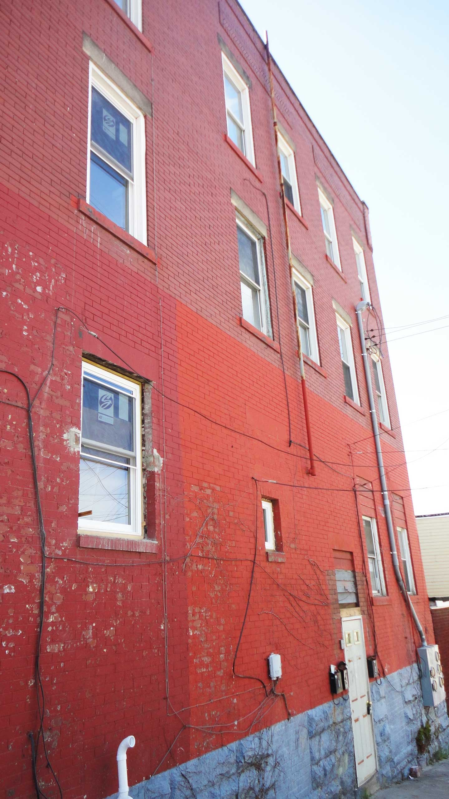 Starting off with replacing the soffit at the back of the building, and replacing a few outdated or broken windows, these small changes somehow make the building look so much more legit. Maybe because rotted wood and rusty metal hanging down from the roof line really don’t seem to say “someone cares about me” like brand new metalwork does. I’m really happy with how this looks, especially because I made the color selection standing out on the sidewalk while squinting up at the sky in the dark one evening after work. It sure is hard keeping up with this while working a 9-5, or an 8-7 if you’re me =)
