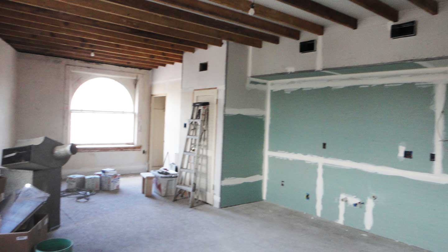 This week the HVAC guys wrapped up 95% of their work… The AC Units are ready and waiting for the final hookup. Because the property line is basically the building’s walls, unfortunately the only place they could go was the roof. So here they are! This location isn’t ideal, so we put down some reflective coating on the roof to try and keep the units from cooking up there. We’ll see how that goes…