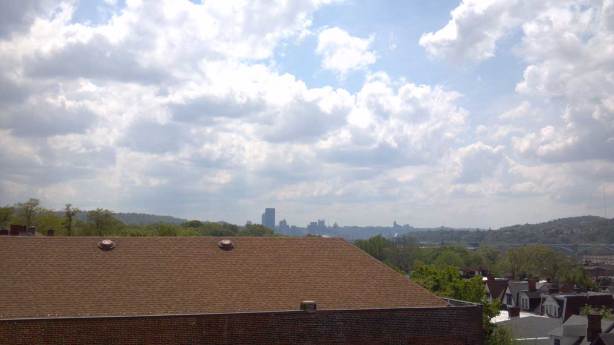 Oh, and while we’re up here… did I mention we’ve got quite the view? Just another thing that makes this building swoon-worthy for me. Of course use of the roof will definitely not be a part of the apartments (hello liability!) It’s still fun to dream about that rooftop-deck-with-a-view-of-downtown-and-those-luscious-green-pgh-hills…