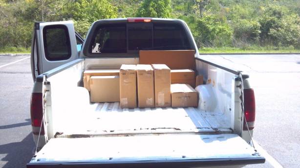 With the finishing coming right along, I did another IKEA run, this time for the bathrooms (and to have a little talk with them about my missing kitchen cabinets…hmph) Can you believe that you’re looking at 4 entire bathroom setups in the back of that truck? Stuff sure slims down when it’s broken into bits and pieces. Lots and lots of bits and pieces that the guys get to put together next week…