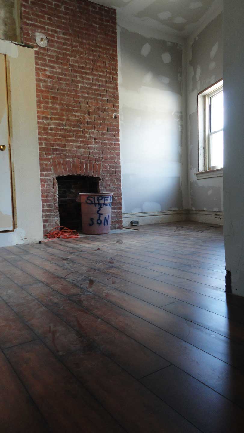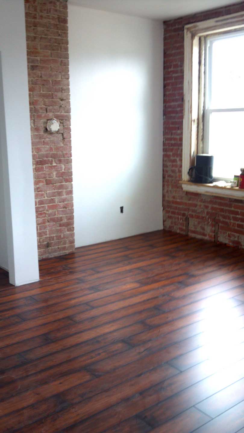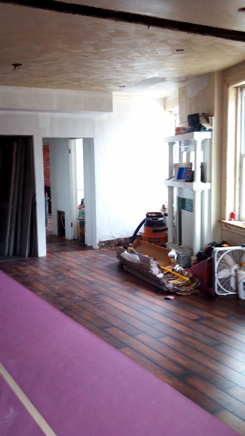 This week over at the lofts, we got a whole bunch of flooring.  All those boxes of laminate that were stacked up in the basement are now in place!  Having some floors in there really makes things feel like they’re coming together.  Check it out.