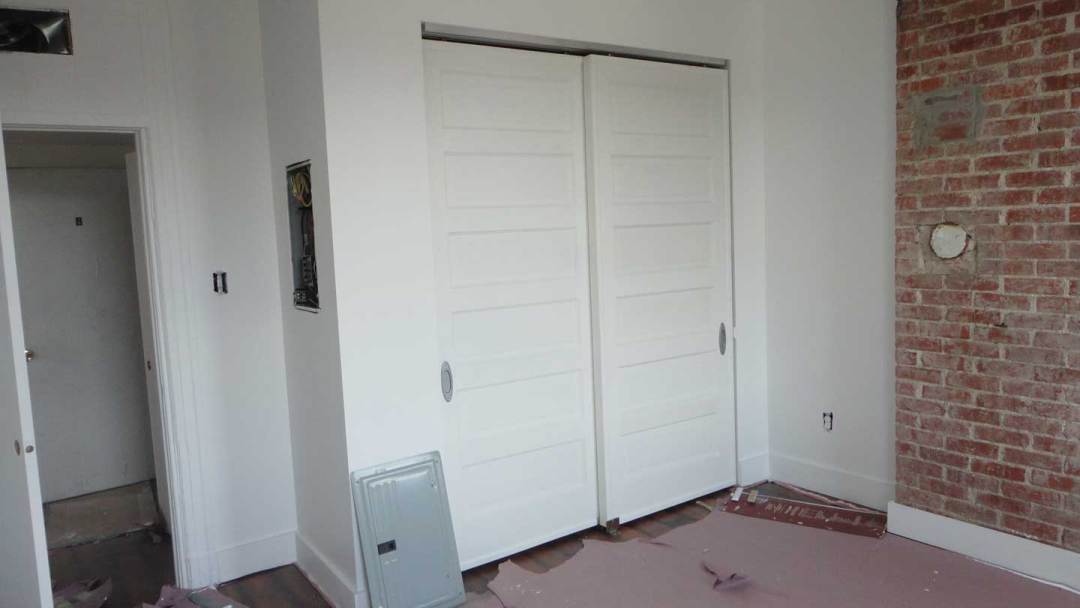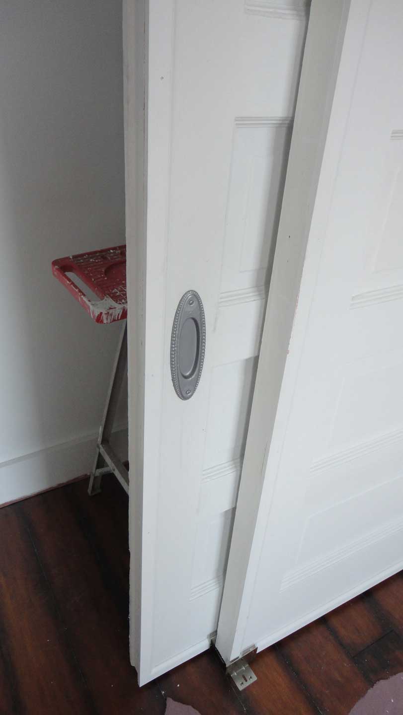 The Third Floor moved along with more finish work.  The closet doors in the “Master” bedroom were installed… they look pretty awesome, huh?  We re-used some pocket doors we found buried in the wall we tore out to open up the living/kitchen area.  It’s really great to be able to find a new use for these cool old doors.
